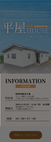 住宅相談会オープンハウス見学会 2025.11.01〜2025.11.30 【予約制】|オーナー様邸完成見学会|11/29(土)・30(日)|新潟市五十嵐 本イベントは終了いたしました。 多くの方にご来場いただき、誠にありがとうございました。 スタッフ一同、心より感謝申し上げます。 Daiei Home 記事一覧に戻る 次の記事へ